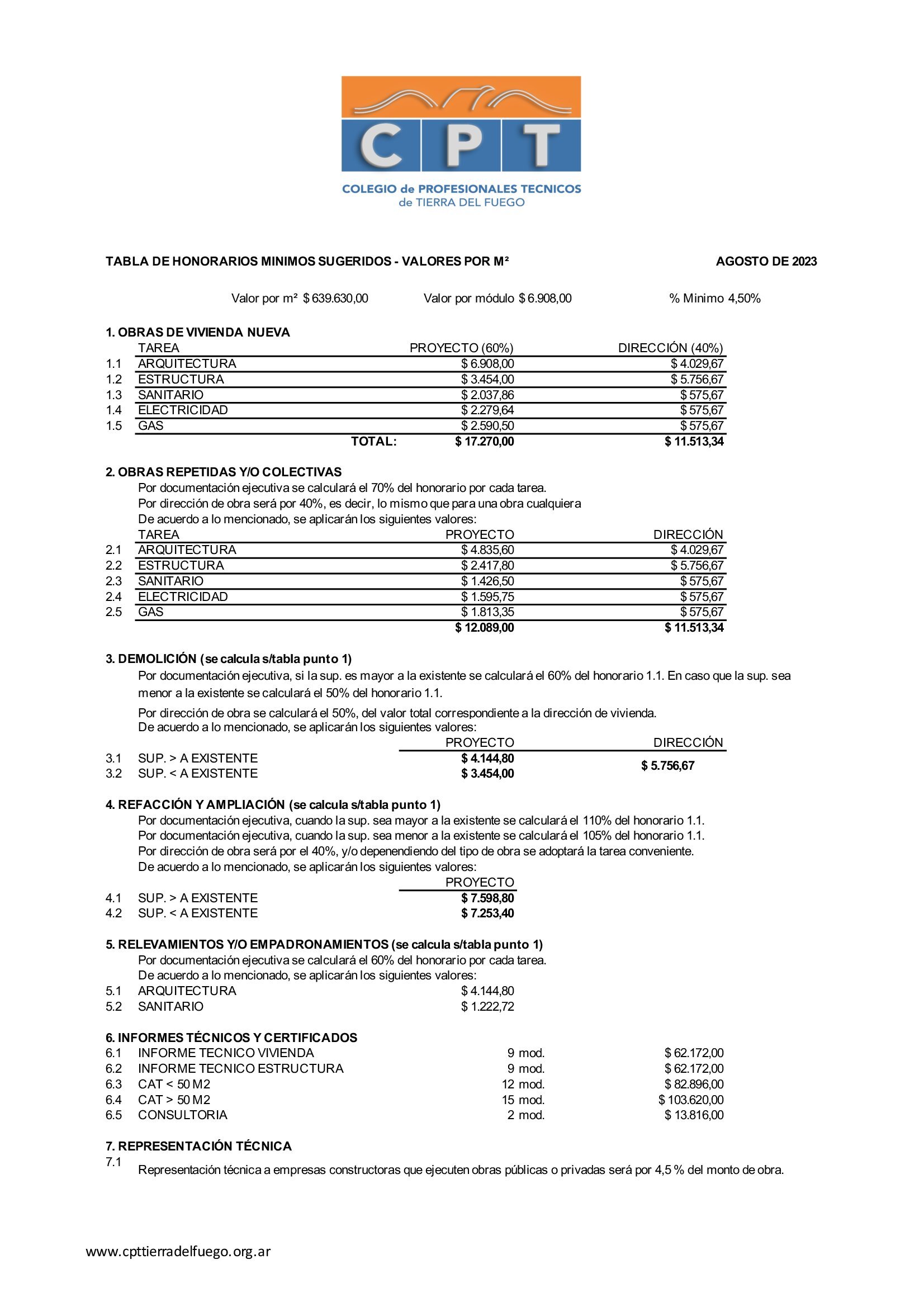 Respecto de los aranceles profesionales, los valores se actualizarán por trimestre.