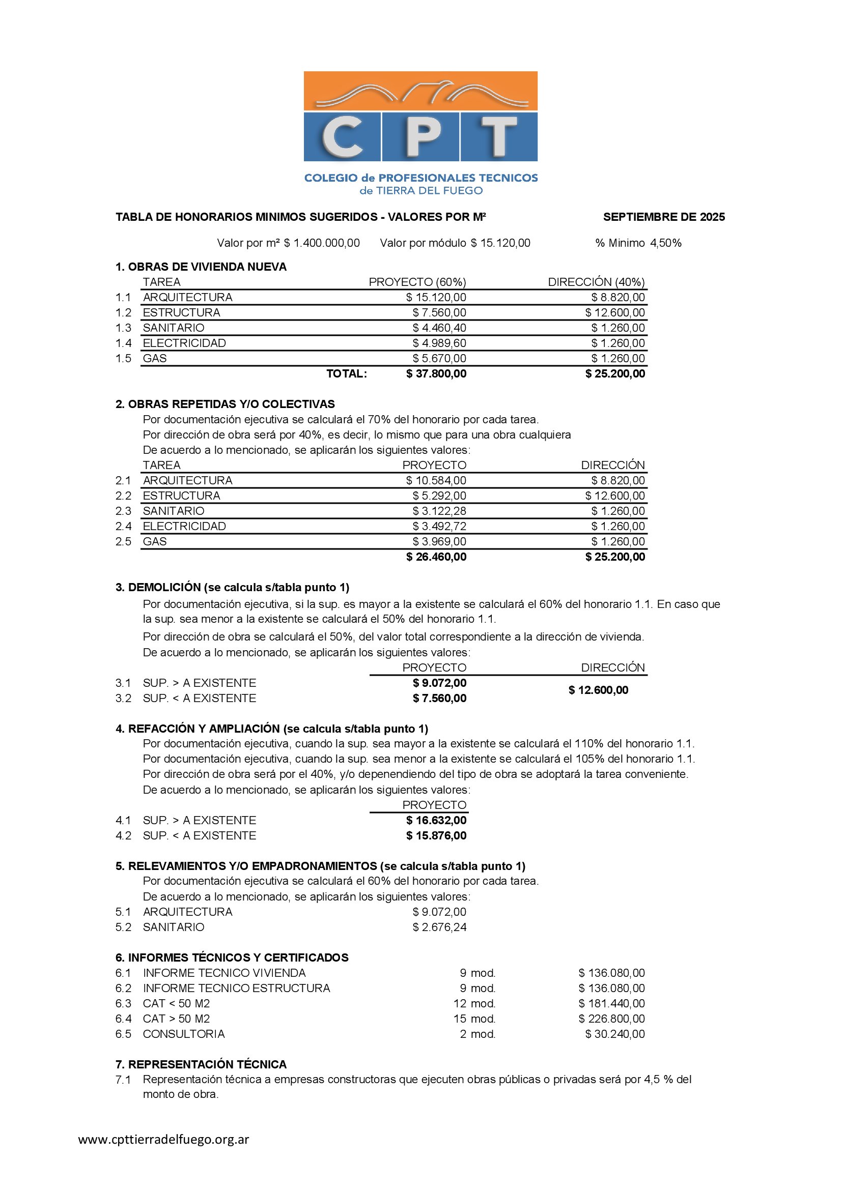Valores para la certificación de las distintas actuaciones profesionales, aprobado por Resolución C.D. N° 0049/2025.