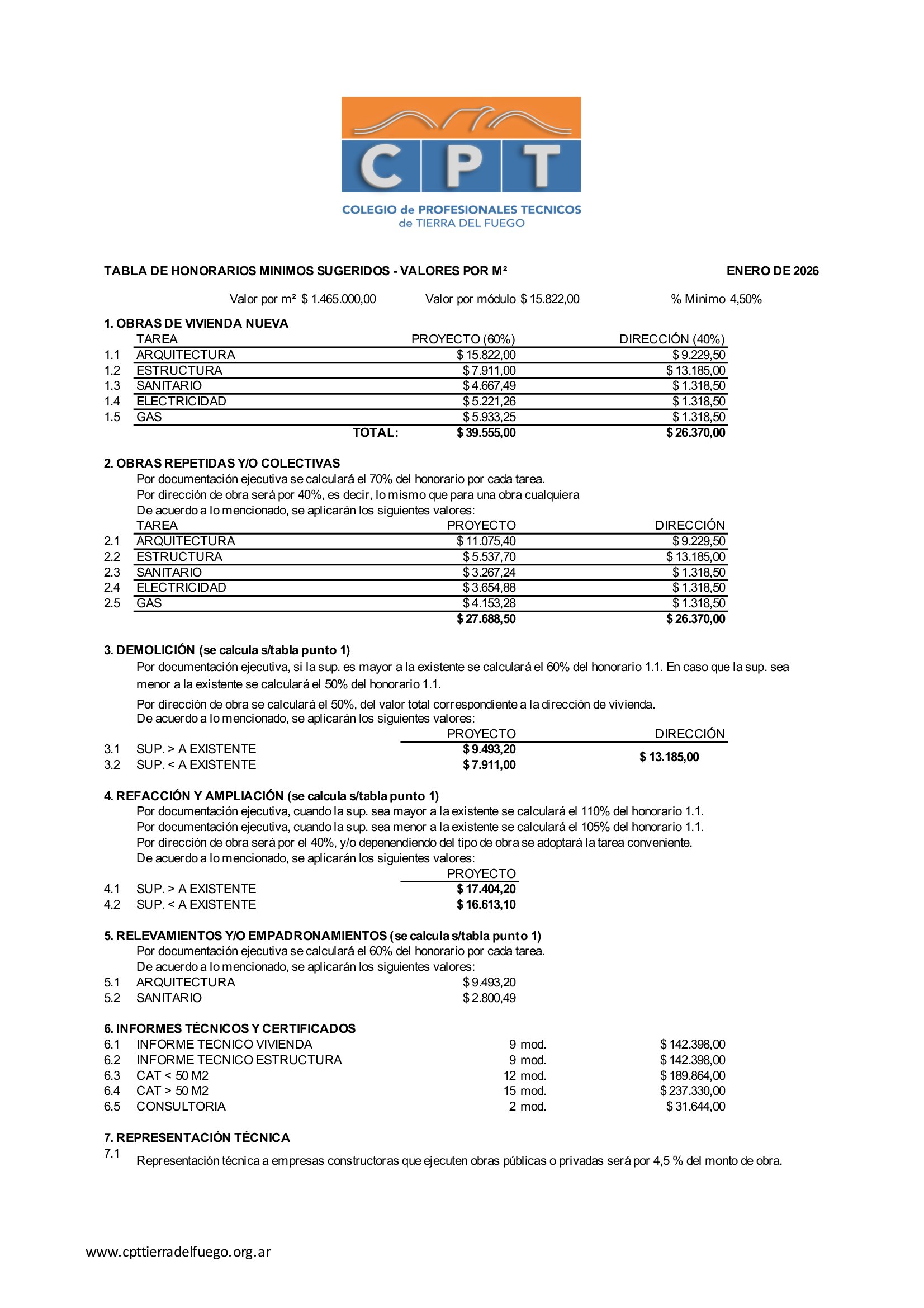 Cabe mencionar que los valores determinados se relacionan por m2 de construcción.